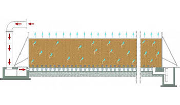L’aria che deve essere depurata, mediante pavimento areato attraversa il corpo di riempimento costituito da uno strato di materiale organico, avviando un processo di dissociazione delle sostanze odorose ed inquinanti.